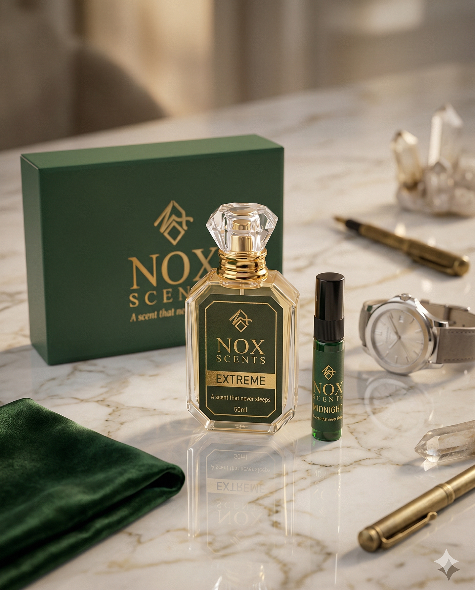 Extreme by NOX Scents is a fresh sporty fragrance designed for men who live with energy and confidence. It starts with a refreshing mix of citrus and mint, giving an instant cooling effect. The heart reveals clean aromatic notes, while the base settles into a soft woody and musky finish. A perfect scent for gym, daytime, and casual outings.